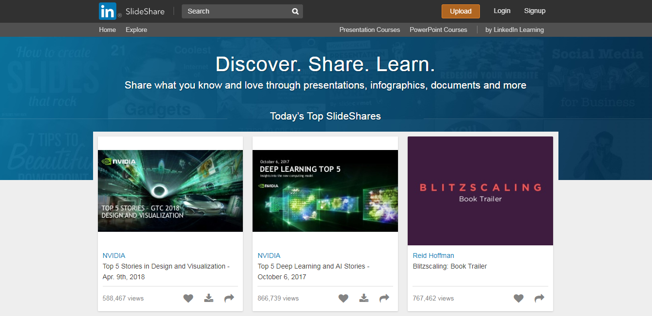 링크드인 (LinkedIn) 에서 제공하는 슬라이드 호스팅 서비스이다.