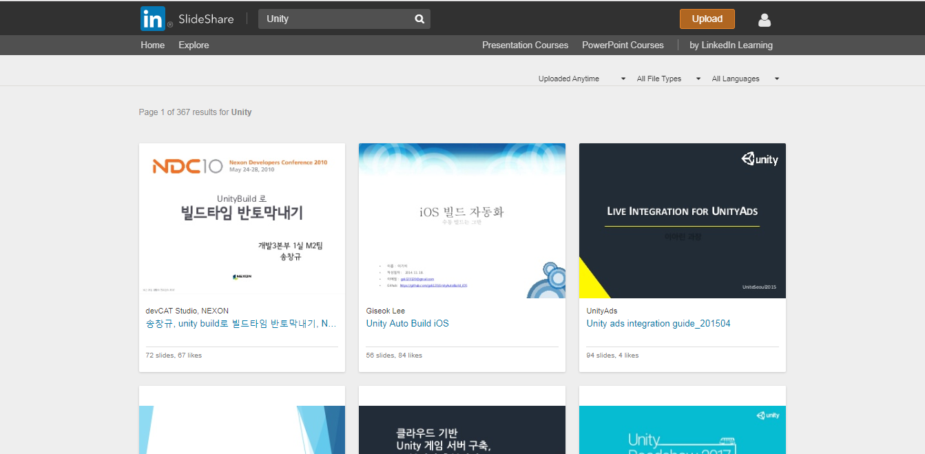 검색창에서 Unity라고 검색하면 다음과 같이 슬라이드 자료들이 뜬다.