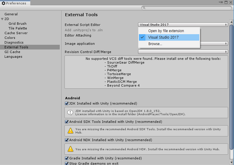 External Tools 에서 External Script Editor 에서 사용 하는 Visual Studio로 바꿔준다